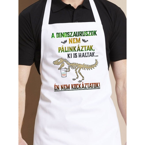 Vicces dinós ajándék, pálinkás kötény. A dinoszauruszok nem pálinkáztak, ki is haltak feliratos kötény, humoros ajándék pálinka kedvelő barátodnak, családtagodnak születésnapra, névnapra. Kötények fehér vagy fekete színben választhatóak. Egyedi mintáva