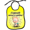 Tréfás, vicces előke, pártedli. Praktikus, aranyos ajándék kisbabáknak, kisgyerekeknek. Vicces ajándék felnőtteknek. Anyaga: polyester Mérete: 26 x 33 cm