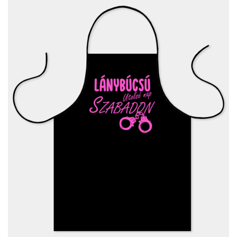 Vicces fekete kötény, Lánybúcsú, utolsó nap szabadon lakástextília termékleírás