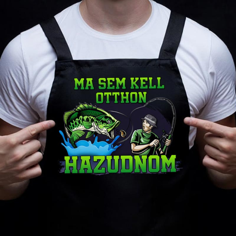 Horgász kötény, Ma sem kell otthon hazudnom humoros felirattal. Tökéletes ajándék a pecázás szerelmeseinek. Ez a kötény védi ruhádat a grillezés során, ugyanakkor stílusos és szórakoztató kiegészítője lehet a keripartinak. A vászon kötény fehér vagy feket