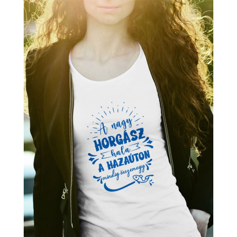 1 kép Vicces horgász női póló - A nagy horgász hala