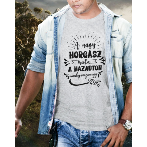 Vicces horgász póló, a nagy horgász hala a hazaúton mindig összemegy. Vicces ajándék olyan pecásoknak, akik mindig túloznak, amikor a fogott hal méretéről kérdezik. Többféle színkombinációban kérheted a mintát és a pólót, válaszd ki a neked tetszőt.