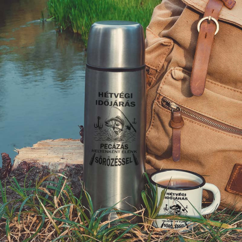 Humoros pecás termoszok, hétvégi sörözés. Vicces horgász termosz sör kedvelő férfiaknak és nőknek. Hétvégi időjárás: Pecázás helyenként élénk sörözéssel feliratos termosz 500ml és 750ml méretben. Rendeld meg kedvenc sörözős termoszodat magadnak és horgász
