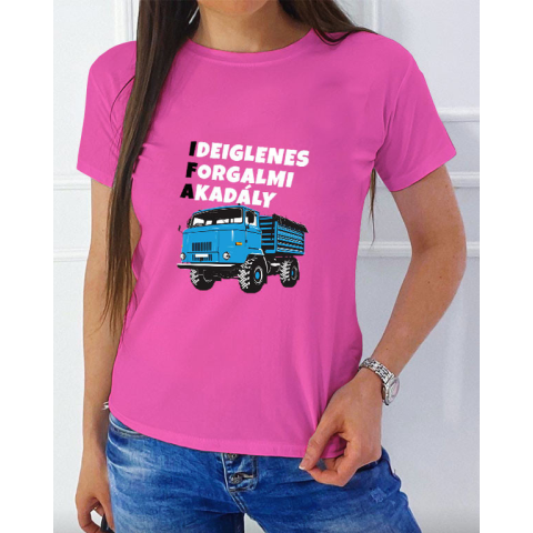 Vicces IFA női póló, forgalmi akadály. Humoros feliratos női póló IFA sofőröknek. Ideiglenes forgalmi akadály, vagyis IFA rendelj magadnak egy ilyen pólót, ha Te is büszke kedvenc teherautódra. Pontos méretekről kérjük, megrendelés előtt tájékozódj mé