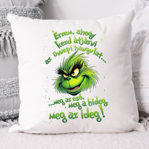 Vicces karácsonyi párna, ünnepi hangulat. Érzem, ahogy kezd átjárni az ünnepi hangulat, meg az eső, meg a hideg, meg az ideg, humoros feliratos párna karácsonyra, mókás grincs fejjel. Ajándékötlet barátnődnek, férjednek, családtagodnak. Válaszd ki a párna