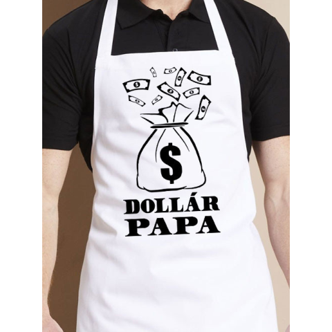 Vicces kötény, Dollár papa kötény. Humoros kötény barátodnak, családtagodnak, olyannak aki elsőként eszedbe jut erről a szóról Dollár papa. Válaszd ki a kötény színét és rendelj ajándékot férfiaknak születésnapra, névnapra. Egyedi mintával ellátott köt