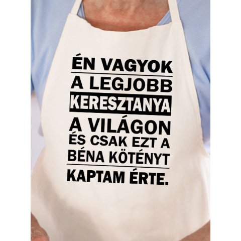 Vicces kötény keresztanyának, én vagyok a legjobb. Én vagyok a legjobb keresztanya a világon és csak ezt a béna kötényt kaptam érte humoros feliratos kötény. Válaszd anyák napjára, születésnapra ajándéknak. Anyaga vászon. Méret: 70 x 79 cm (szél. x mag.)