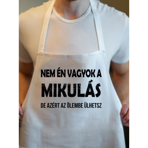 Vicces kötény mikulásra, nem én vagyok a mikulás, de azért az ölembe ülhetsz feliratos kötény férfiaknak. Humoros ajándék karácsonyra barátoknak, kollégáknak fekete vagy fehér színben rendelhető. Egyedi mintával ellátott kötényünk praktikus és stílusos