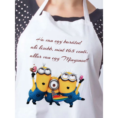 Vicces minyonos kötény, ajándék barátoknak. Ha van egy barátod, aki kisebb mint 165 cm, akkor van egy minyonod feliratos kötény. Meglepetés ha neked is van egy cuki alacsony barátod, barátnőd akinek névnapja, szülinapja van. Praktikus ajándék grillezésekh