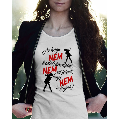 Vicces női póló, nem tudok énekelni. Az hogy nem tudok énekelni nem azt jelenti hogy nem is fogok humoros felirattal női póló, ami bármilyen ünnepre megfelelő ajándék lehet minden énekelni szerető barátnődnek és rokonodnak. Rendeld meg a többféle méret és