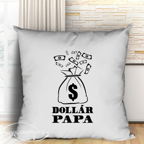 Vicces párna, Dollár papa párna. Humoros párna barátodnak, családtagodnak, olyannak aki elsőként eszedbe jut erről a szóról Dollár papa. Válaszd ki a párna színét és rendelj ajándékot férfiaknak születésnapra, névnapra. A párna mérete 40x40 cm, a huzat