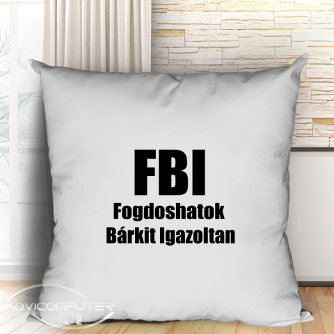 Vicces ajándékok, FBI párna. FBI, avagy fogdoshatok bárkit igazoltan, humoros feliratos párna, ami minden bevállalós szingli férfi kedvelt dekorációja lehet. Válaszd a neked tetsző színben a párnát. A párna mérete 40x40 cm, a huzat praktikus húzózárral