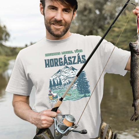 Vicces pecás póló, kevesebb munka. Egyedi, kevesebb munka, több HORGÁSZÁS feliratos horgász póló minden szenvedélyes pecás számára, akik a munkából mindig a vízpartra vágynak. A pólón található minta tökéletesen visszaadja a horgászat hangulatát, amiről m