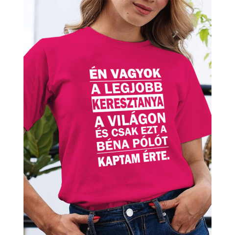 Vicces póló keresztanyának, én vagyok a legjobb. Én vagyok a legjobb keresztanya a világon és csak ezt a béna pólót kaptam érte humoros feliratos póló. Válaszd anyák napjára, születésnapra ajándéknak. A póló 40 °C-on mosógépben mosható. Kiváló minőségű