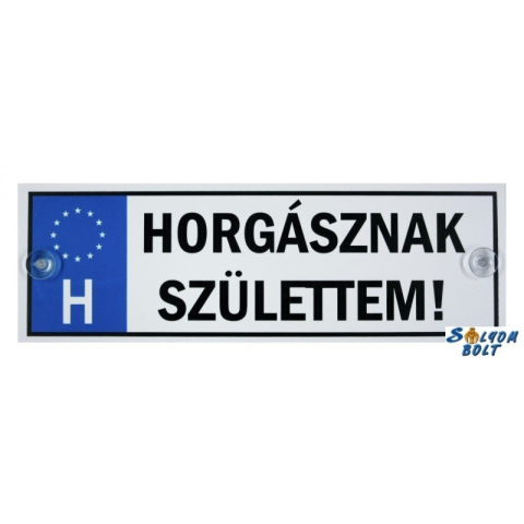 Vicces rendszámtábla, Horgásznak születtem 2 db tapadókoronggal lehet rögzíteni, amiket adunk hozzá. Anyaga: műanyag Mérete: 33 x 11 cm Pecásoknak kiváló ajándék! Vicces rendszámtábla műanyagból, tréfás felirattal, amit 2 db tapadókoronggal lehet az ab
