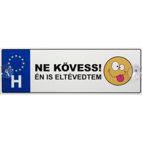 Vicces rendszámtábla, tréfás felirattal, ábrával 2 db tapadókoronggal lehet rögzíteni, amiket adunk hozzá. Anyaga: tartós, strapabíró keménypapír Mérete: 33 x 11 cm Vicces rendszámtábla tréfás felirattal és rajzzal, amit 2 db tapadókoronggal lehet az a