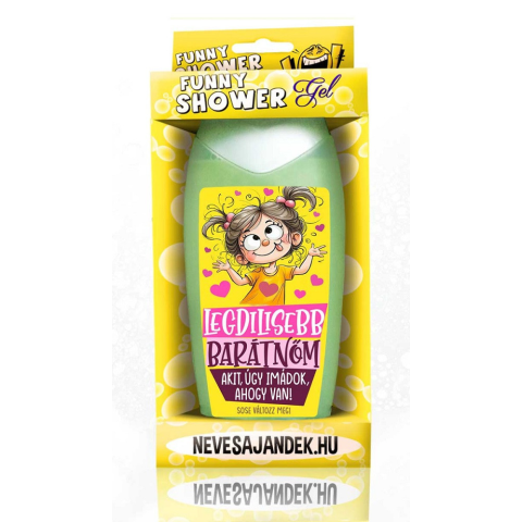 Hasznos és egyben vicces ajándék, minden korosztály számára. Ajánljuk barátnőknek. A tusfürdő illata kellemes, unisex. Űrtartalom: 300 ml Mérete: 7,5 x 17,5 cm