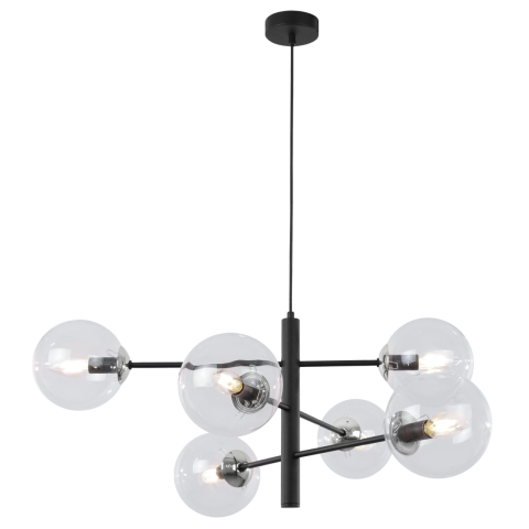 Vicenza Fekete-Króm 6 Ágú Függőlámpa - Modern Elegancia Otthonodba 💡 A Vicenza függőlámpa a modern design és a kifinomult elegancia tökéletes ötvözete. Fekete és króm színei, valamint az átlátszó gömb lámpabúrák egyedi megjelenést kölcsönöznek, melye...