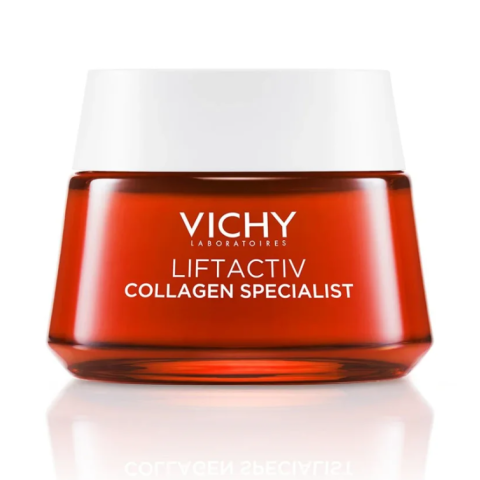 Vichy Liftactiv Collagen Specialist Krém 50 mlVICHY LIFTACTIV COLLAGEN SPECIALIST Komplex öregedésgátló arckrém a kollagénhiány jelei ellen.Az életkor előrehaladtával a kollagéntermelés csökkenhet, ami láthatóbb ráncokhoz, az arckontúr definíciójának csökkenéséhez és feszességvesztéshez vezethet. Ezen felül a bőr tónusa fakónak és egyenetlennek tűnhet, sötét foltokkal. A Vichy Megoldása:A COLLAGEN SPECIALIST ARCKRÉM továbbfejlesztett formulája vulkanikus er