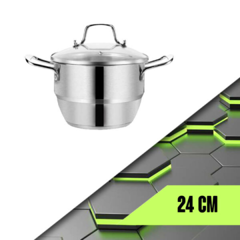 Victor rozsdamentes acél lábas hőálló üvegfedővel. Két rozsdamentes acél fogantyúval.