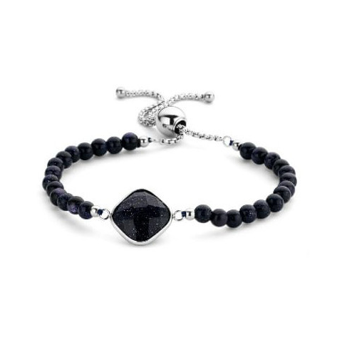 Victoria Ezüst színű fekete köves, gyöngyös karkötő