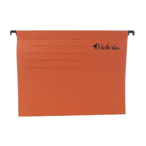 Függőmappa, karton, A4, VICTORIA OFFICE, narancs -magas minőségű újrahasznosított manila karton alapanyag -műanyag címketartó -225 g/m2 karton -A4 méretű dokumentumok tárolására -a színek megkönnyíti a rendszerezést -feliratozható, vonalazott felület