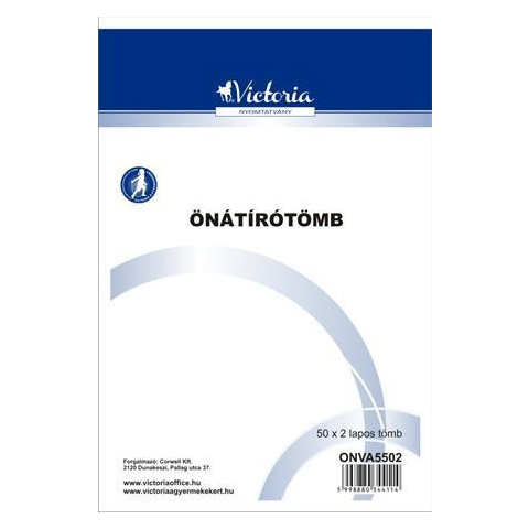 Önátírótömb, A5, 50x2 lap, VICTORIA PAPER - önátíró, vegykezelt papírból készült jegyzettömbök - kivitel: 50x2 lapos - méret: A5 - nem sorszámozott - első példány franciakockás, a másolatok sima lapon jelennek meg Itt megtekinthető és letölthető a has