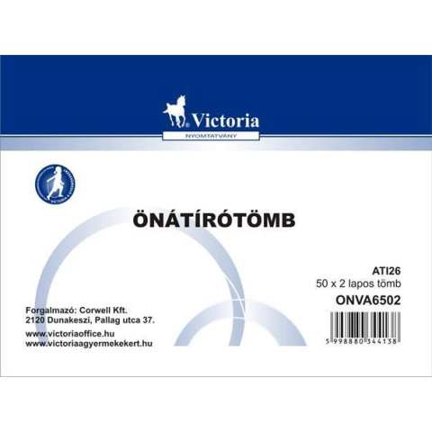 Önátírótömb, A6, 50x2 lap, VICTORIA PAPER - önátíró, vegykezelt papírból készült jegyzettömbök - kivitel: 50x2 lapos - méret: A6 - nem sorszámozott - első példány franciakockás, a másolatok sima lapon jelennek meg Itt megtekinthető és letölthető a has