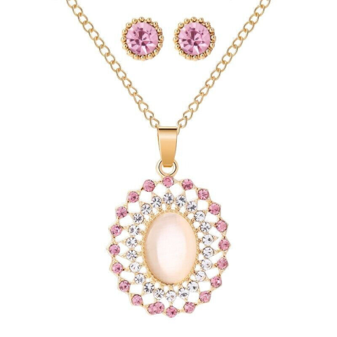 Vidám nyaklánc és fülbevaló szett, arany-rózsaszín ékszer szett 1 kép