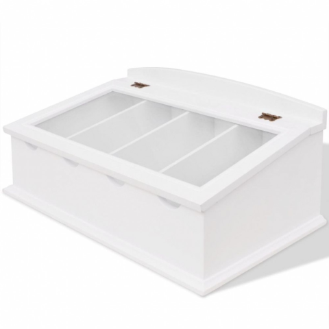 Szín: FehérAnyag: MDFMéret: 47 x 27 x 21,5cm (Ho x Szé x Ma)Üveg fedéllel4 tároló rekesszelHasználható ékszerdobozként is