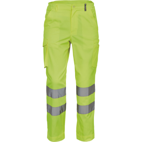 VIGO HV nadrág sárga 42 • férfi munkanadrág 7 cm széles fényvisszavető csíkokkal és HI-VIS elemekkel • 2 oldalsó zseb + 1 érmezseb • 2 oldalzseb • 2 hátsó zseb • rugalmas oldalsó betétek a derékon • meghosszabbítható szárhossz