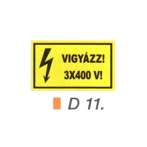 Vigyázz! 3x400 V! Cikkszám: D11 Kivitel: Öntapadós Méret: 100x60mm