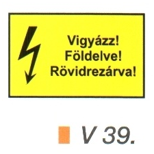 Vigyázz! Földelve! Rövidrezárva! Cikkszám: v39 kivitel: műanyag méret: 245x160 mm