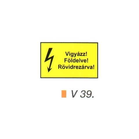 Vigyázz! Földelve! Rövidrezárva! Cikkszám: v39 kivitel: műanyag méret: 245x160 mm