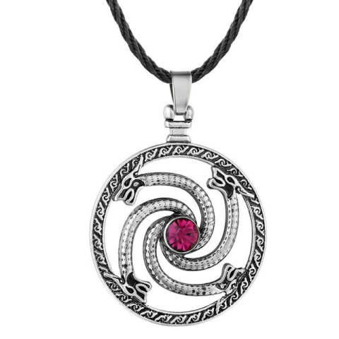 1 kép Viking Farkasos motívumos medál műbőr nyaklánccal piros kővel