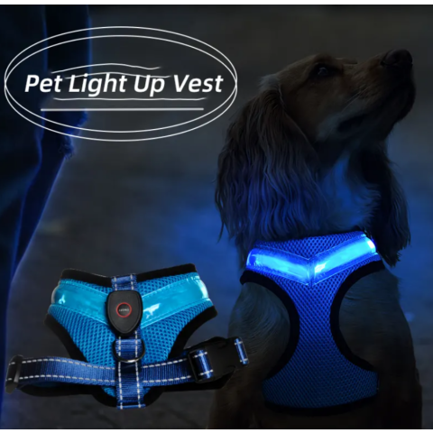 Világító éjszakai LED komfort kutyahám, kék, S nyakörv, póráz, hám kutyáknak 1 kép