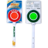 Irányítsd az autókat, bicikliseket rendőrtárcsával! A Világító forgalomirányító tárcsa egy kerek műanyag tábla, piros és zöld oldalakkal. A tárcsa fényvisszaverő felülettel készült, de ha megnyomod rajta a gombot, még világítani is fog, hogy a közlekedők messziről is láthassák, hogy meg kell állniuk, vagy haladhatnak. A Világító forgalomirányító tárcsa 2 darab AA ceruzaelemmel működik, a csomagolás az elemeket tartalmazza. Tárcsa méretei: 32 x 12 cm.