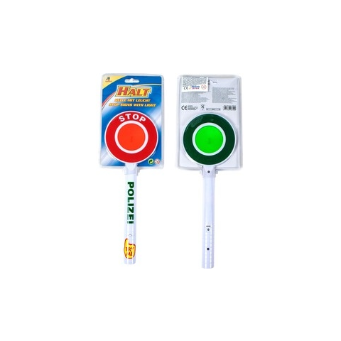 Irányítsd az autókat, bicikliseket rendőrtárcsával! A Világító forgalomirányító tárcsa egy kerek műanyag tábla, piros és zöld oldalakkal. A tárcsa fényvisszaverő felülettel készült, de ha megnyomod rajta a gombot, még világítani is fog, hogy a közlekedők messziről is láthassák, hogy meg kell állniuk, vagy haladhatnak. A Világító forgalomirányító tárcsa 2 darab AA ceruzaelemmel működik, a csomagolás az elemeket tartalmazza. Tárcsa méretei: 32 x 12 cm.