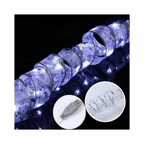 1 kép Világító karácsonyi szalag USB csatlakozóval - Ezüst