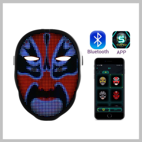 Világító LED Arcmaszk Bluetooth Alkalmazással holm7149Világító LED Arcmaszk Bluetooth Alkalmazással – Kápráztassa el környezetét ezzel a lenyűgöző, egyedi maszkkal!Ez a fejedelmi LED arcmaszk tökéletes választás felnőttek számára, amely minden szem garantáltan rád szegeződik. Az állítható pánttal ellátott teljes maszk 2074 darab nagy teljesítményű, fényes és hosszú élettartamú lámpagyönggyel és 2121 RGB LED-es lámpagyönggyel rendelkezik. 45 dinamikus