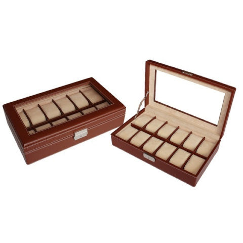 1 kép Világos barna varrott óratartó doboz 12 órához