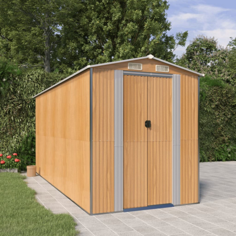 1 kép világosbarna horganyzott acél kerti fészer 192 x 440 x 223 cm