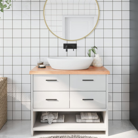 1 kép világosbarna kezelt tömör fa fürdőszobai pult 100x60x4 cm