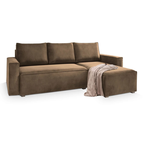 Világosbarna kihúzható sarokkanapé CAVELO, kétoldalas bútor termékleírás