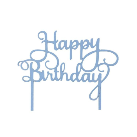 Világoskék Happy Birthday felirat tortadísz sziluett