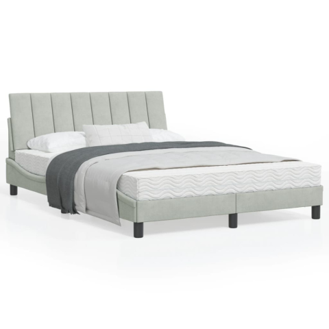 1 kép világosszürke bársony ágykeret fejtámlával 140 x 200 cm