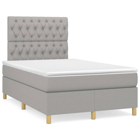 1 kép világosszürke szövet rugós és LED-es ágy matraccal 120x190 cm