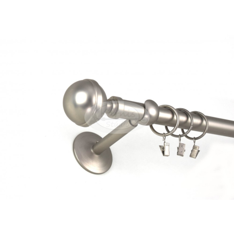 A VILLACH nikkel-matt 1 rudas karnis szett tartalma: 1 db nikkel-matt színű 25 mm átmérőjű fém karnisrúd a kiválasztott hosszúságban 2 db Villach típusú nikkel-matt fém végzáró 2 db falra szerelhető fém konzol a felszereléshez szükséges tiplik és csavaro