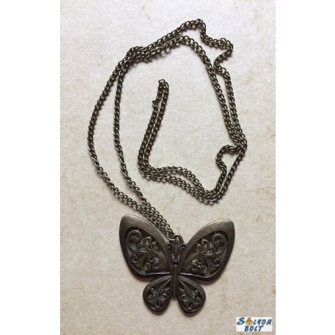 Vintage pillangó nyaklánc bronz színű lánccal Anyaga: fém ötvözet Lánc hossza: 70 cm Medál mérete: 5,5 x 4,6 cm