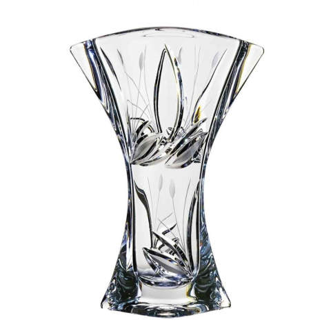 Modern alakú kristály váza virágok elhelyezéséhez. Modern mintával készült, 24,5 cm magas váza. A termék kitűnően alkalmas ajándékozásra is, mint például esküvői ajándék, évfordulós ajándék, szülinapi ajándék vagy akár céges ajándék. A dekort a Black Crys